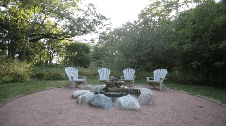 Sit back and relax by our firepit defined by beautiful granite boulders and decomposed granite gravel.