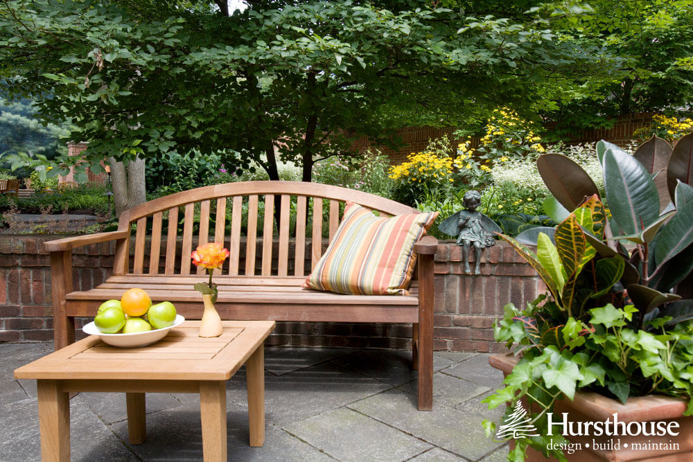 “Every garden needs a bench,” Hursthouse says. A bench offers a place to sit, rest and observe. It can be placed near the front entry or in a far corner of the garden. Benches, whether made from a slab of slate, or crafted from teak or metal, should be sturdy and selected to match the style and feeling of the garden.